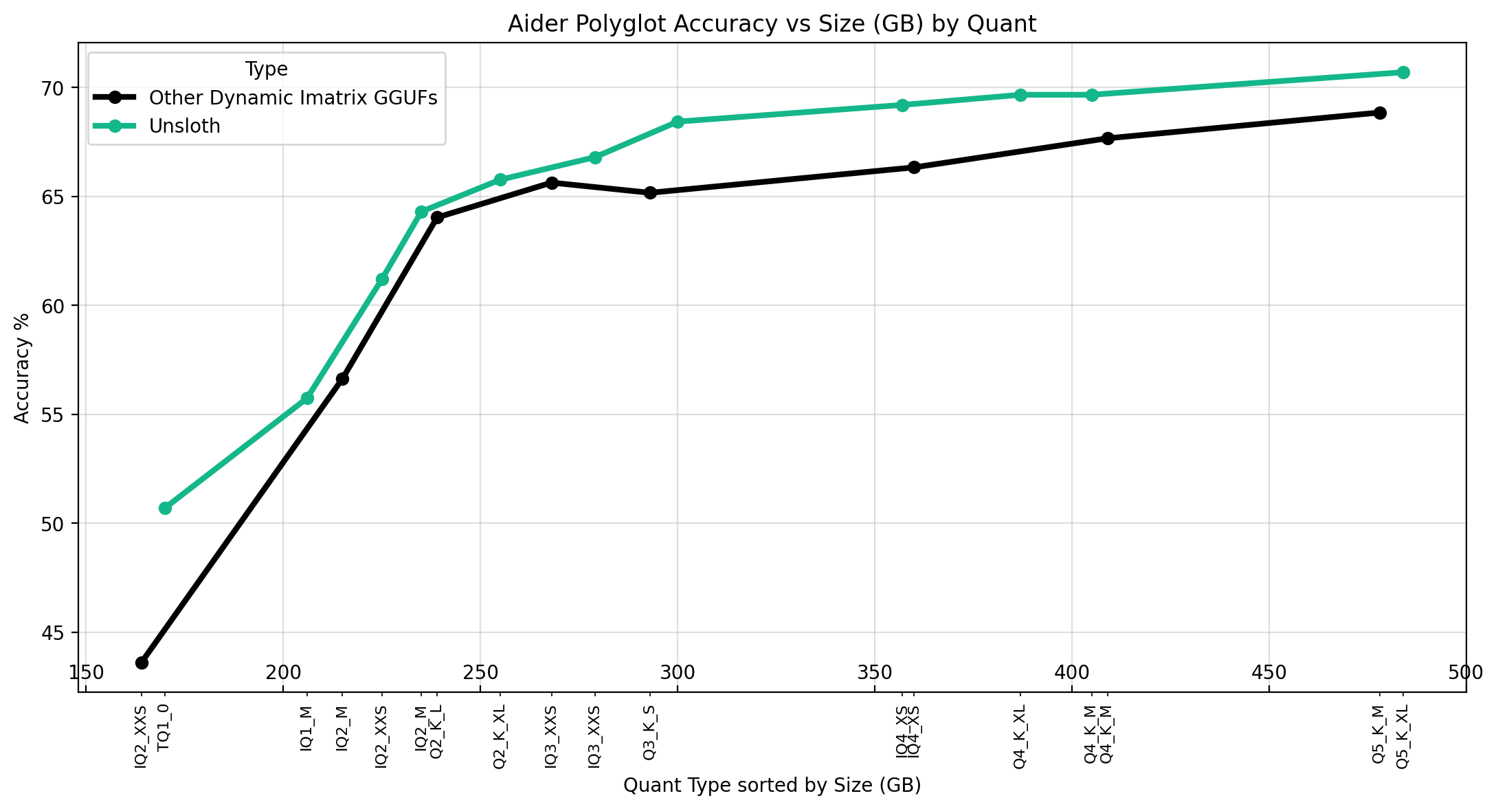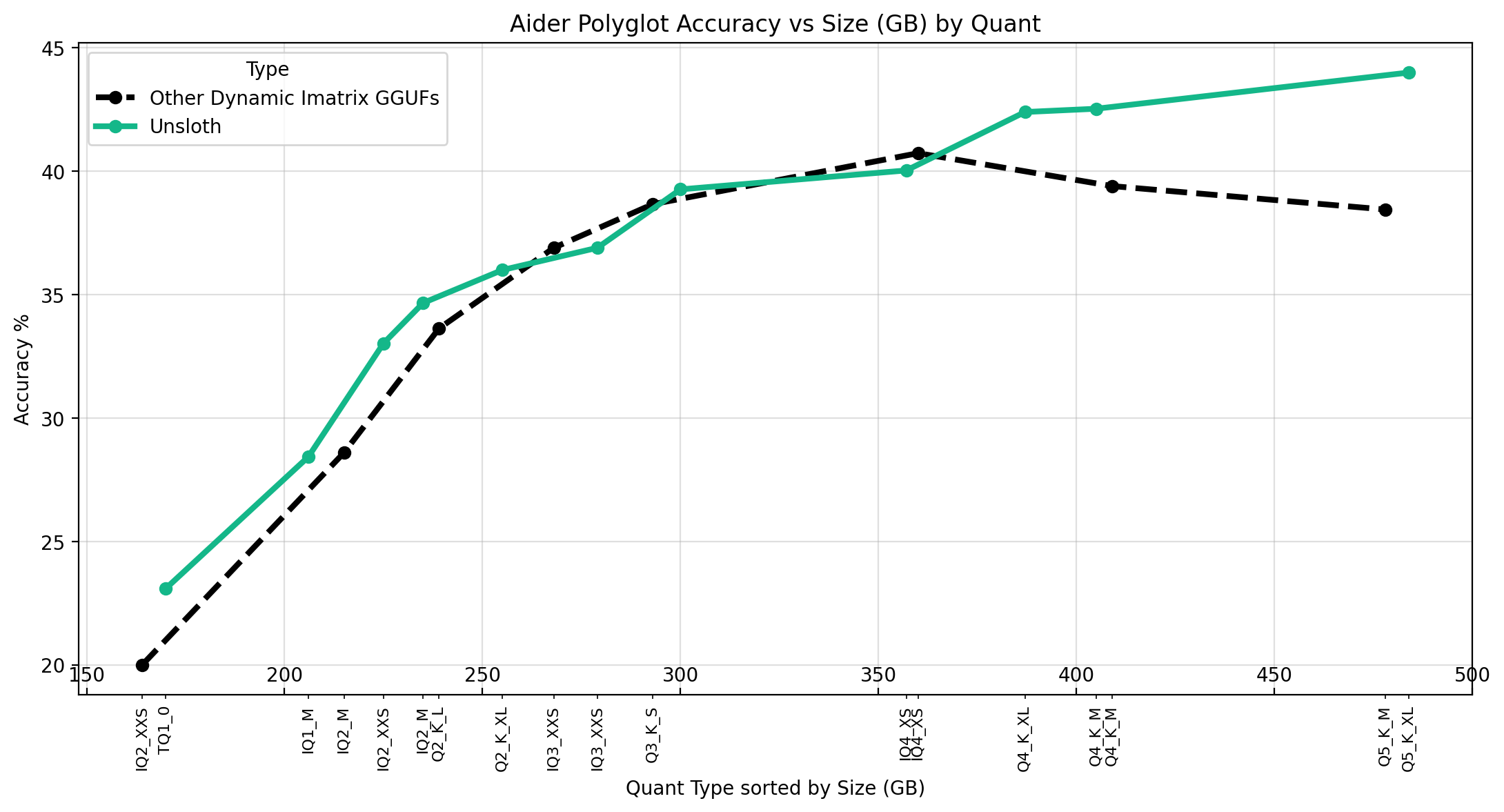 # Unsloth Dynamic GGUFs on Aider Polyglot