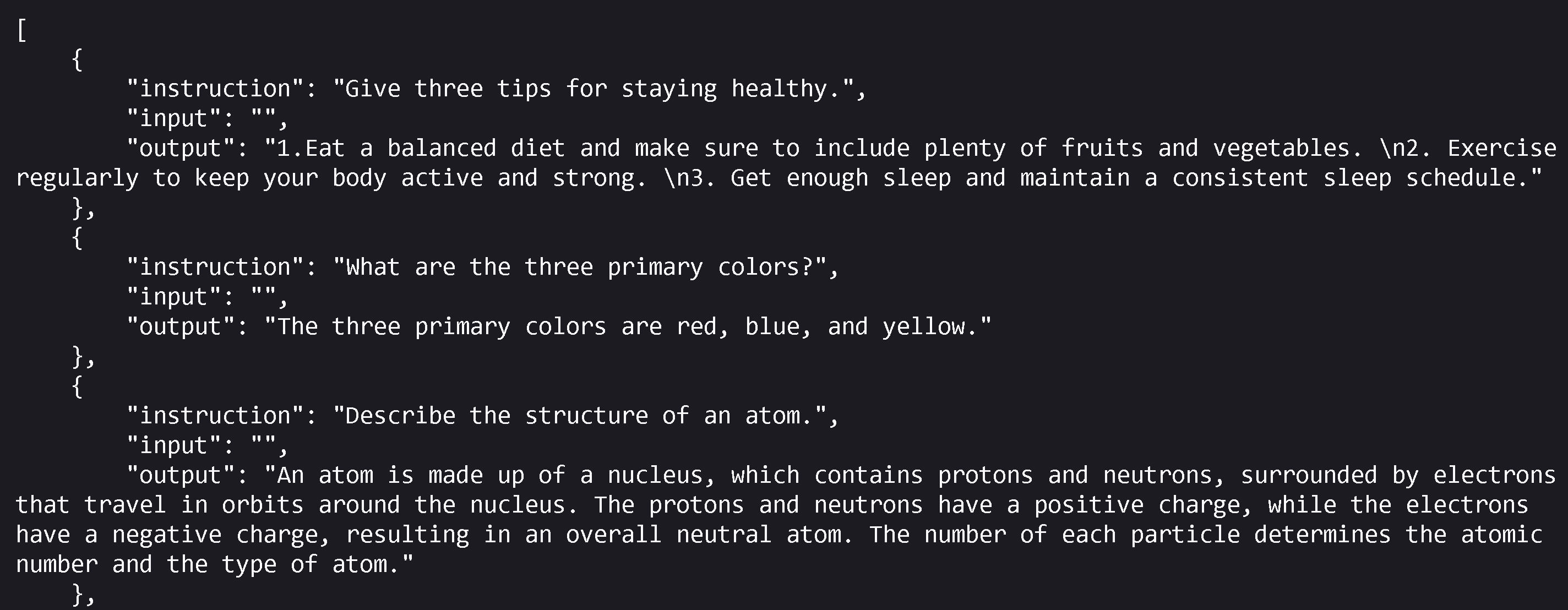 ### Common Data Formats for LLM Training