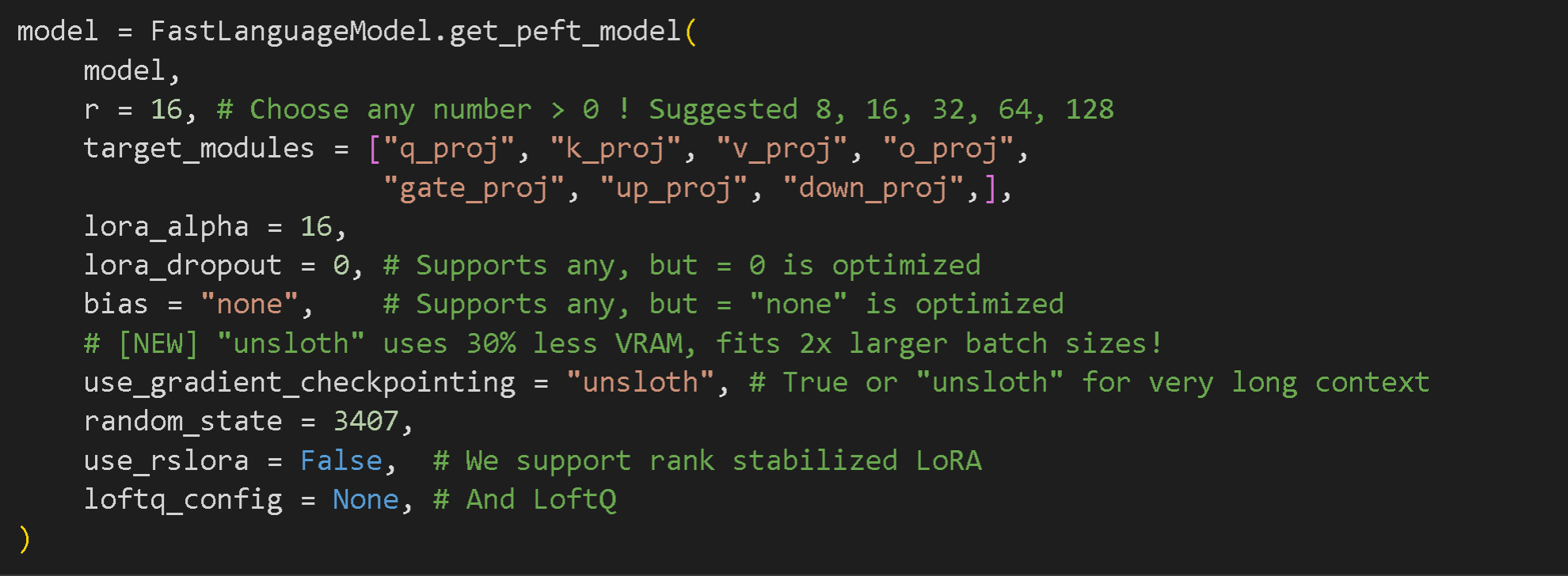 lora_dropout = 0, # Supports any, but = 0 is optimized