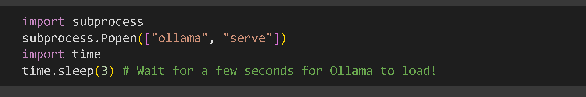 Then, we have to run Ollama itself in the background. We use `subprocess` because Colab doesn't like asynchronous calls, but normally one just runs `ollama serve` in the terminal / command prompt.