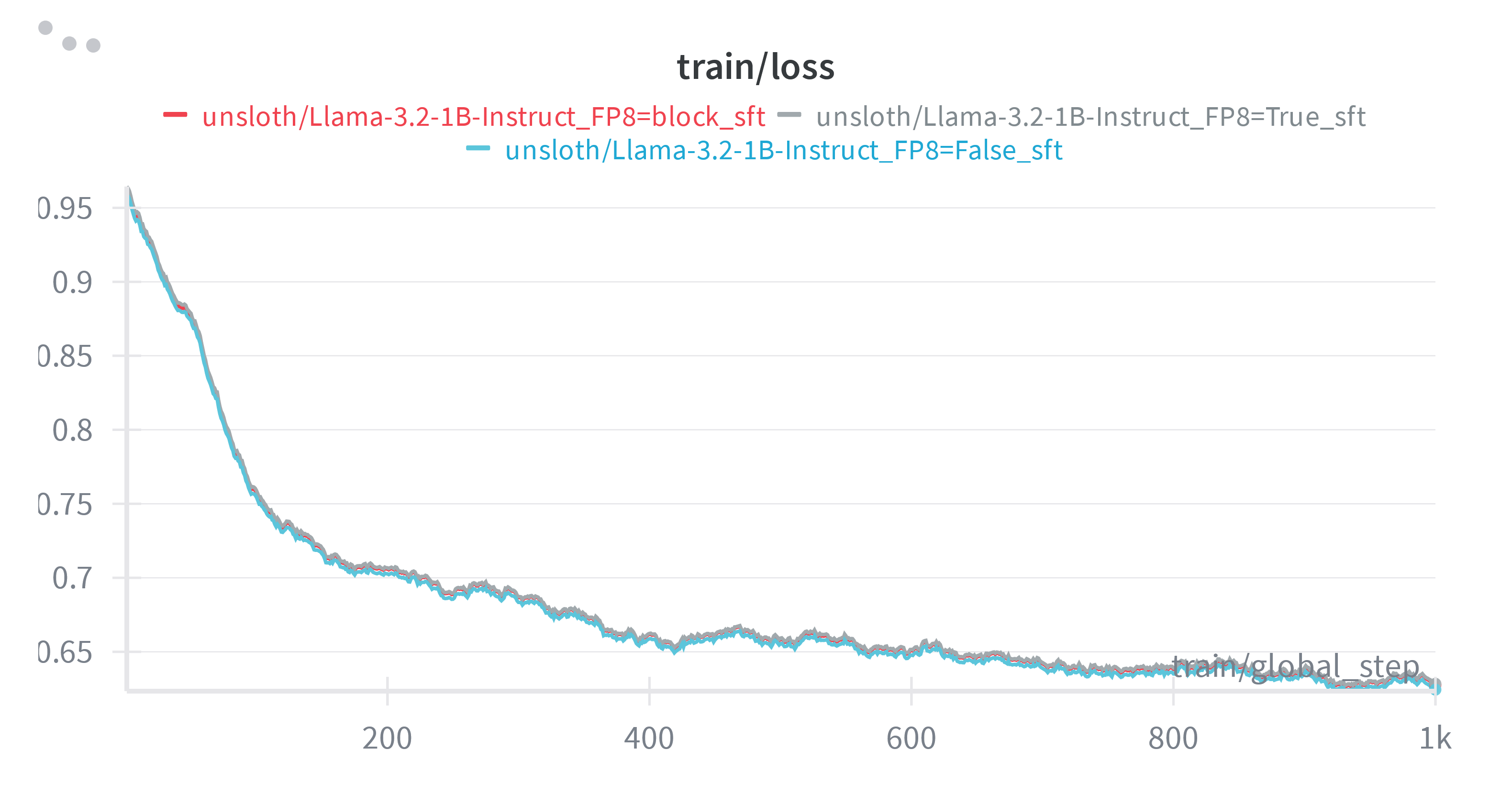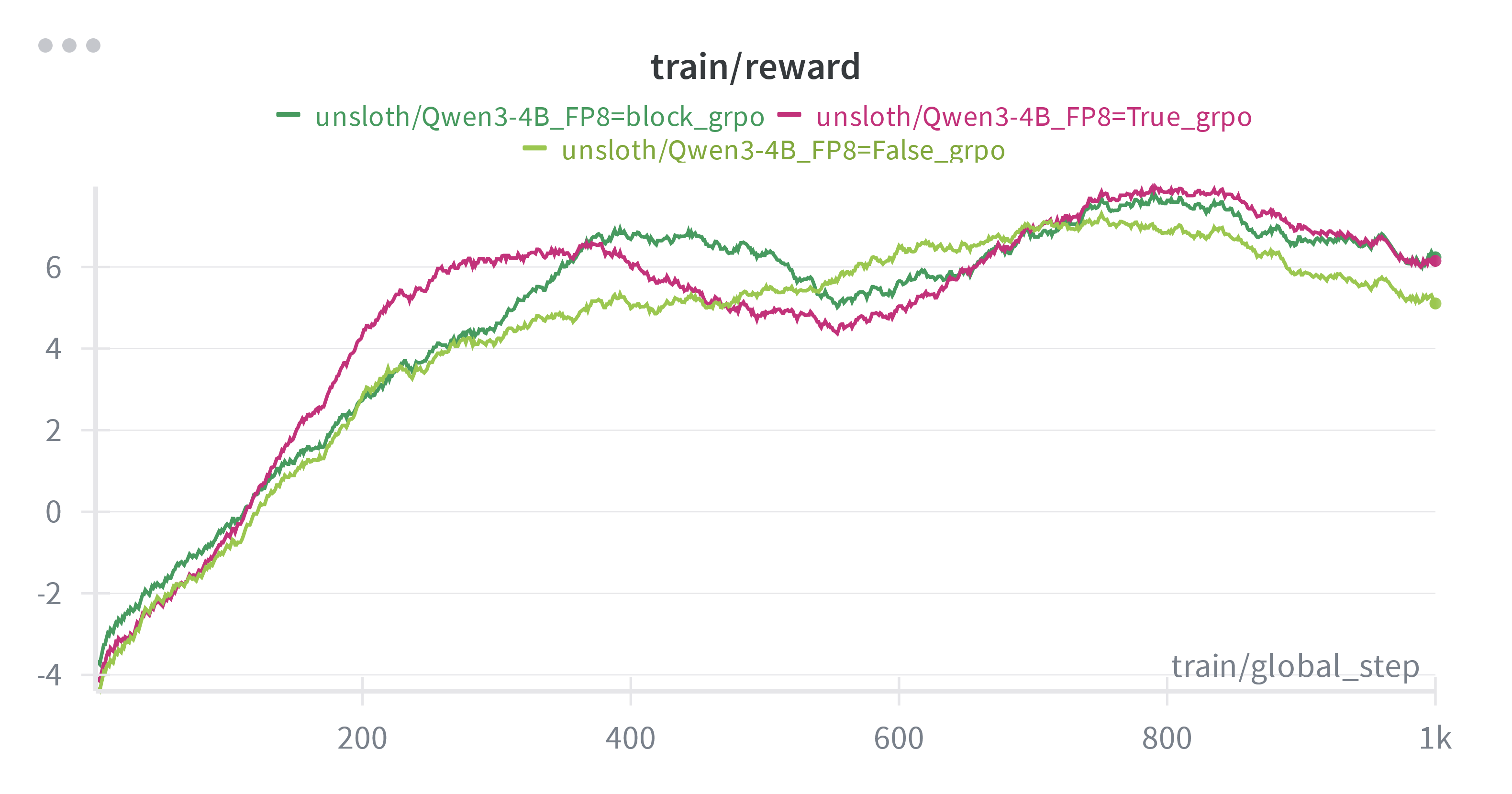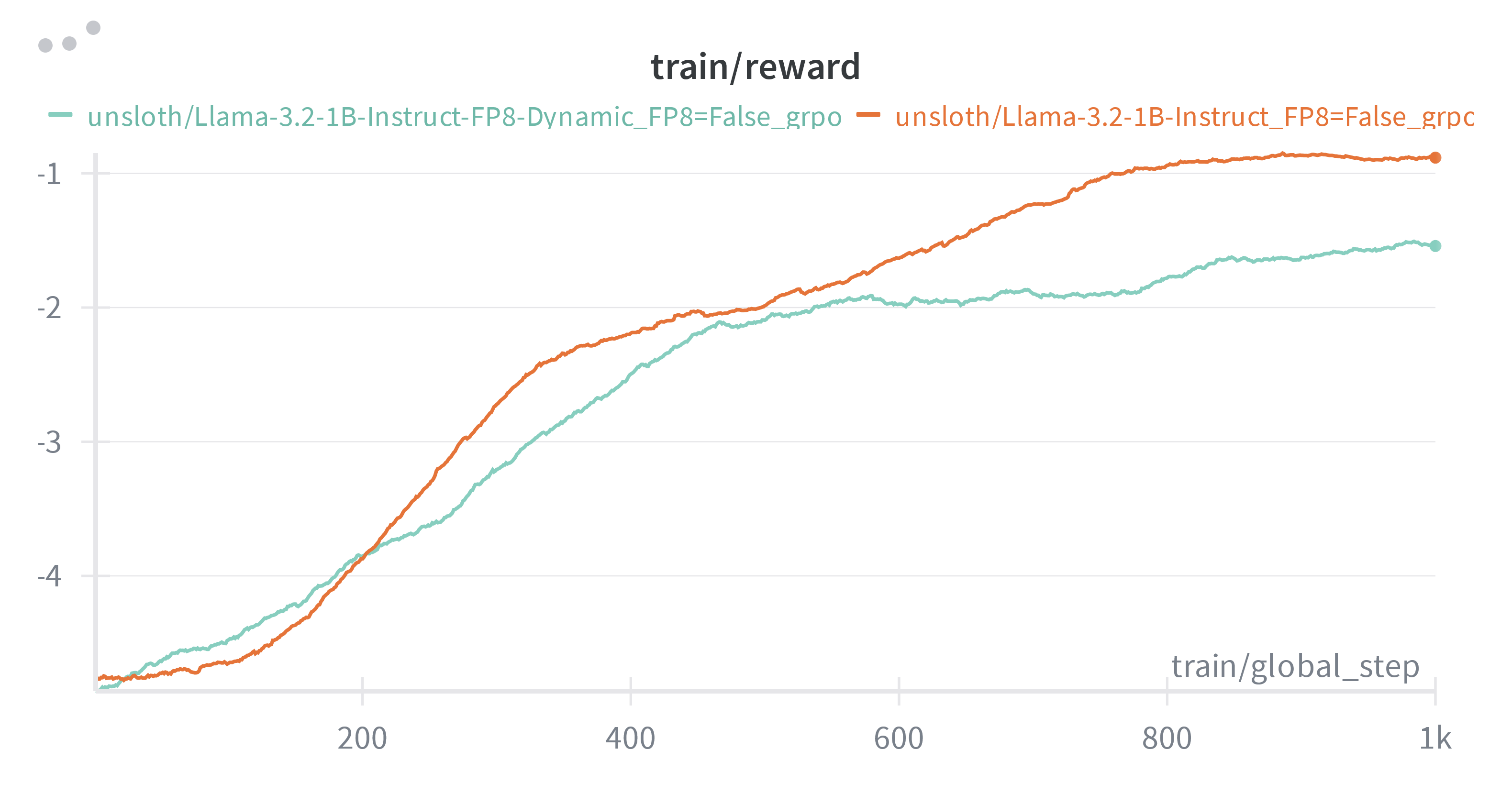 **Notebooks:** [Qwen3-8B FP8 GRPO](https://colab.research.google.com/github/unslothai/notebooks/blob/main/nb/Qwen3_8B_FP8_GRPO.ipynb) and [Llama-3.2-1B FP8 GRPO](https://colab.research.google.com/github/unslothai/notebooks/blob/main/nb/Llama_FP8_GRPO.ipynb)