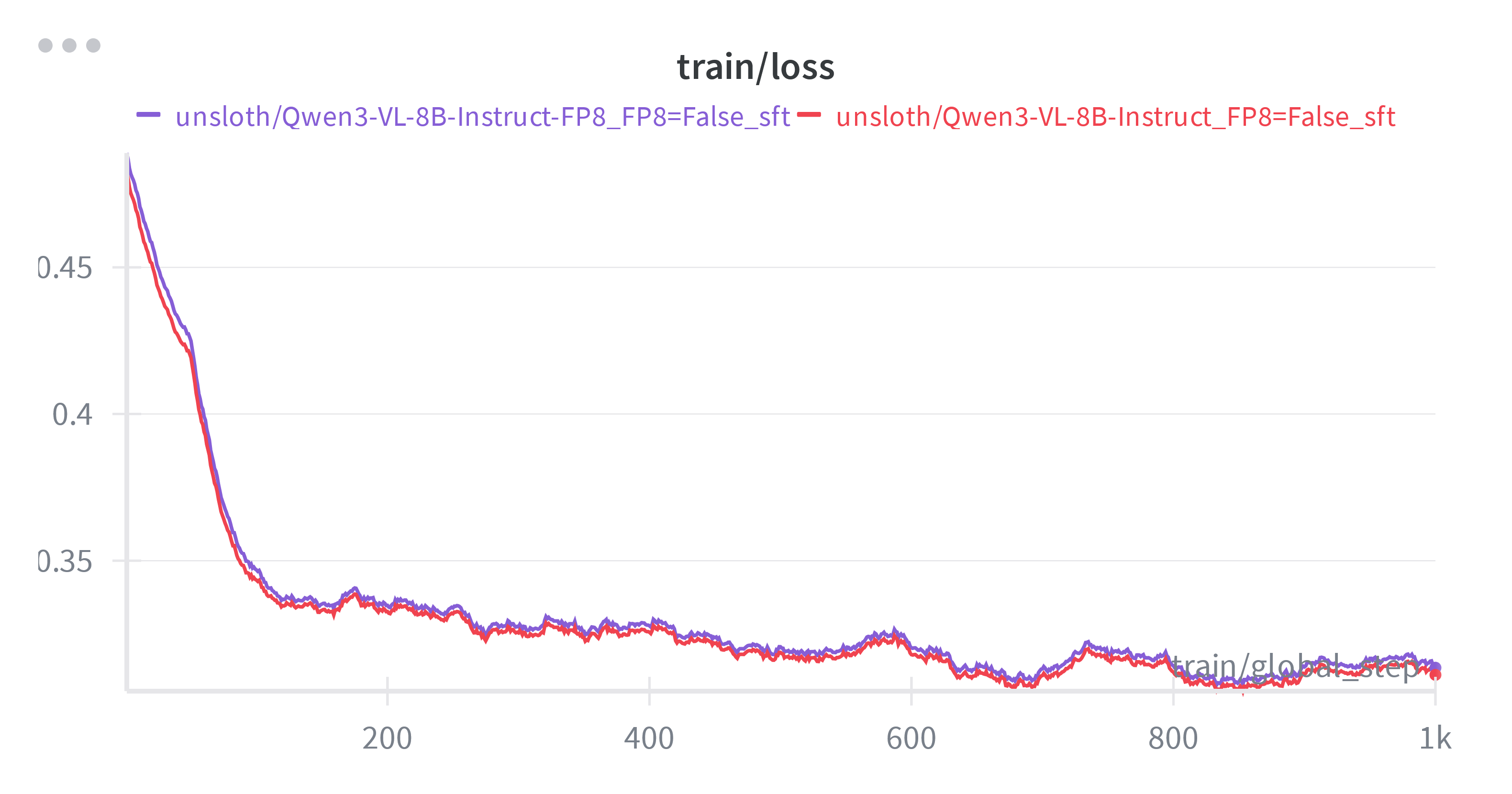 We tested multiple models including Qwen3-4B, 8B, 14B, Llama 3.2 1B, 3B, Qwen3-VL-2B, Qwen3-VL 4B and many more. All were trained both in BF16 and FP8. As seen in the plots, the **loss curves during SFT for BF16 and FP8 closely track each other**. There isn’t much to choose between the two data types in terms of training loss: